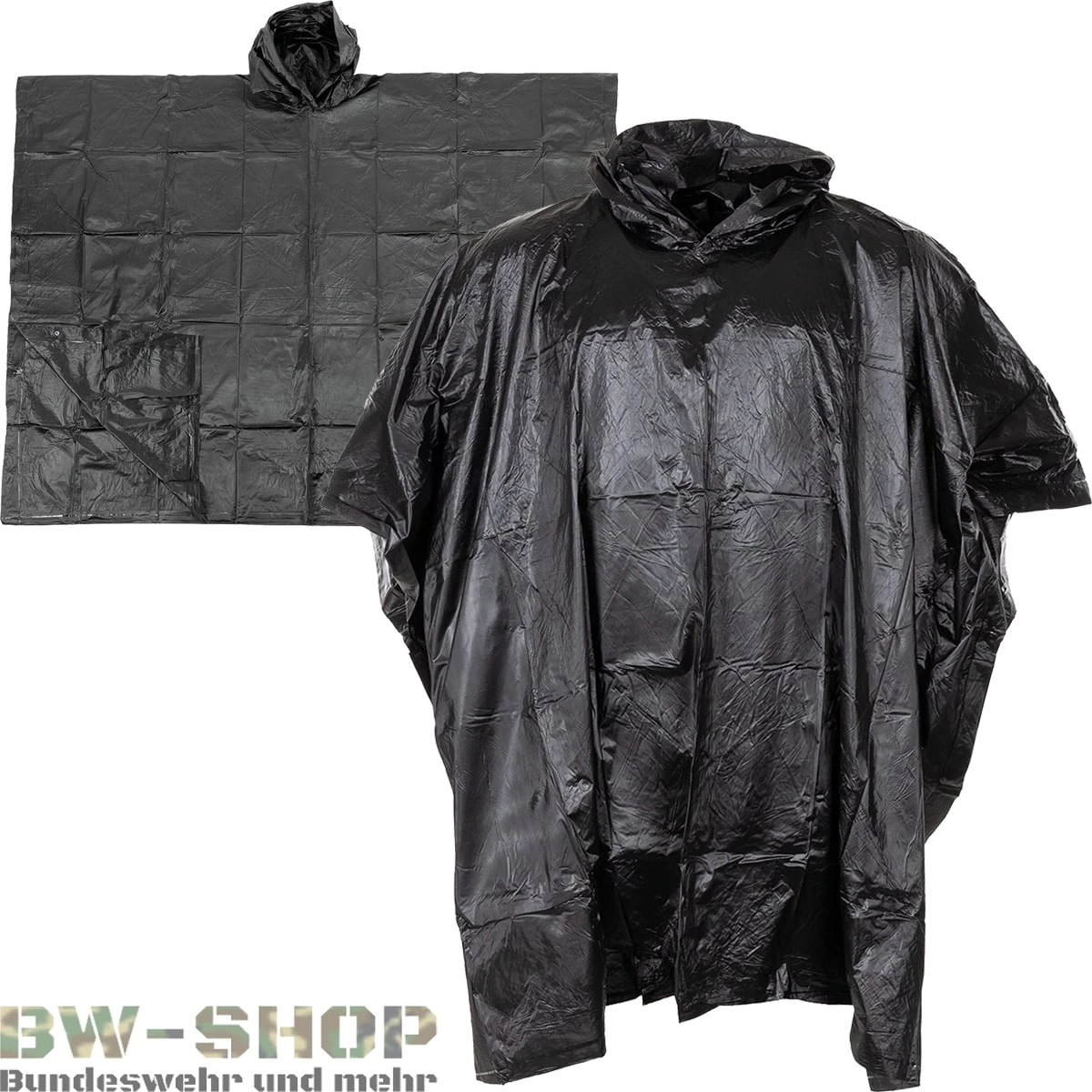 Ein einfacher Regenumhang aus Vinyl. Er ist leicht und schnell übergeworfen, um sich vor Nässe zu schützen. Der Poncho kann auch als Unterlage, Schutzplane, Abdeckplane, Biwaksack oder Notzelt genutzt werden und ist somit ein absoluter Allrounder.