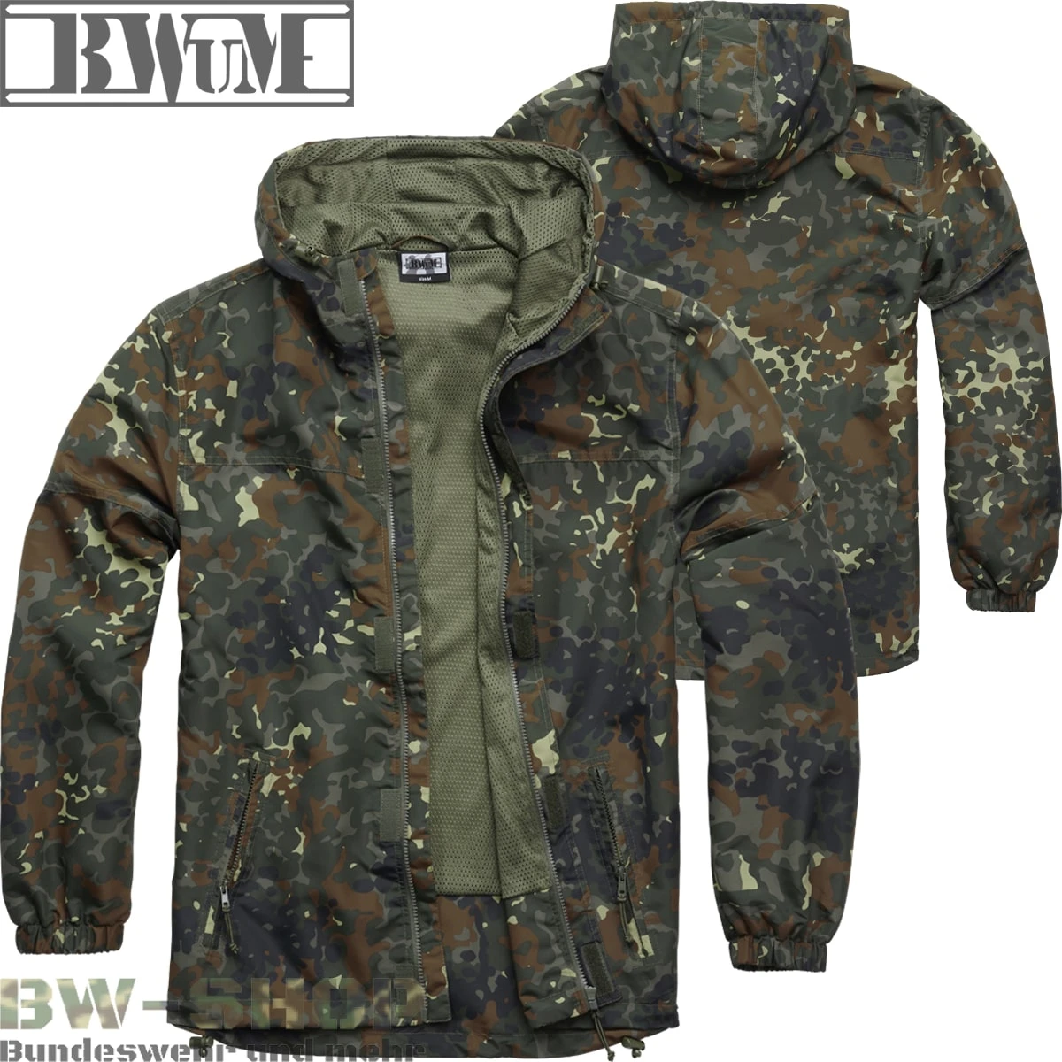 Damit der nächste Ausflug nicht ins Wasser fällt! Dieser Windbreaker ist ideal für schmuddeliges Wetter auch bei warmen Temperaturen und wird zu einem unverzichtbaren Begleiter in der Übergangszeit und im Sommer. Durch das spezielle Netzfutter und das robuste Außenmaterial haben Sie immer ein angenehmes Klima im Windbreaker. Ebenso überzeugt unser BWuM Windbreaker Sommer nicht nur durch die gewohnte Qualität, sondern hat außerdem den ganz großen Vorteil, dass er einen durchgehenden Frontreißverschluss hat. Somit müssen Sie sich den Windbreaker nicht mehr wie gewohnt über den Kopf ziehen. Er lässt sich bequem mit dem Frontreißverschluss öffnen und schließen. Auch dort ist trotzdem die Nässeschutzfunktion gegeben, da der Reißverschluss durch eine wasserfeste Klettleiste geschützt wird. Ein perfekter Begleiter der neue Windbreaker Sommer mit Frontreißverschluss – optimales Klima, robust, wasserabweisend und leicht an- und ausziehbar! Hier erhalten Sie eine perfekte Jacke für viele Zwecke unserer Eigenmarke BWuM (Bundeswehr-und-Mehr). Unsere Marke steht für Qualität, die Sie sicher nicht enttäuschen wird. Wir bieten Ihnen zu einem fairen Preis die best möglichsten Produkte aus eigener Entwicklung.